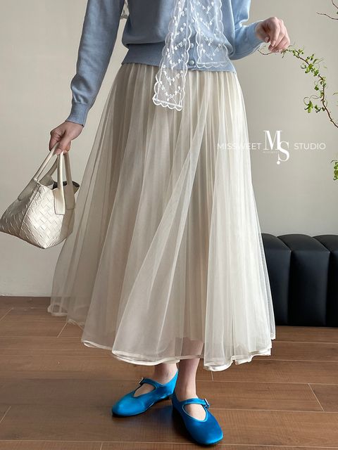 missweet 實拍|靜謐午後_百搭壓褶A字長裙。2色